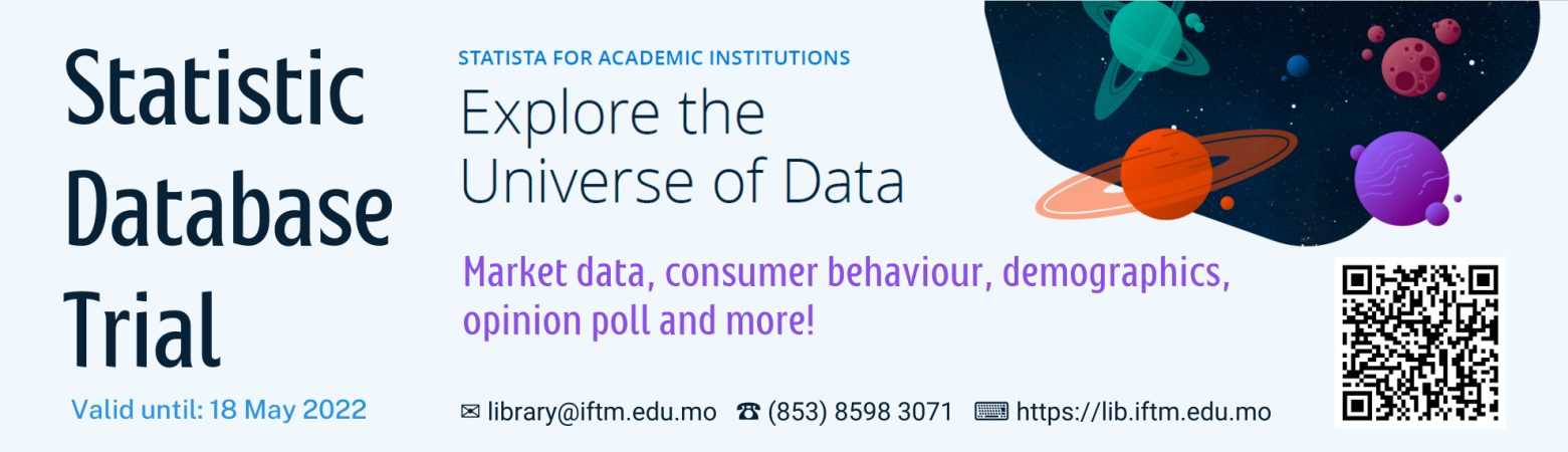 We’d like to share with you a trial for Statista, a statistics database providing market data, consumer behaviour, demographics and opinion polls, including: