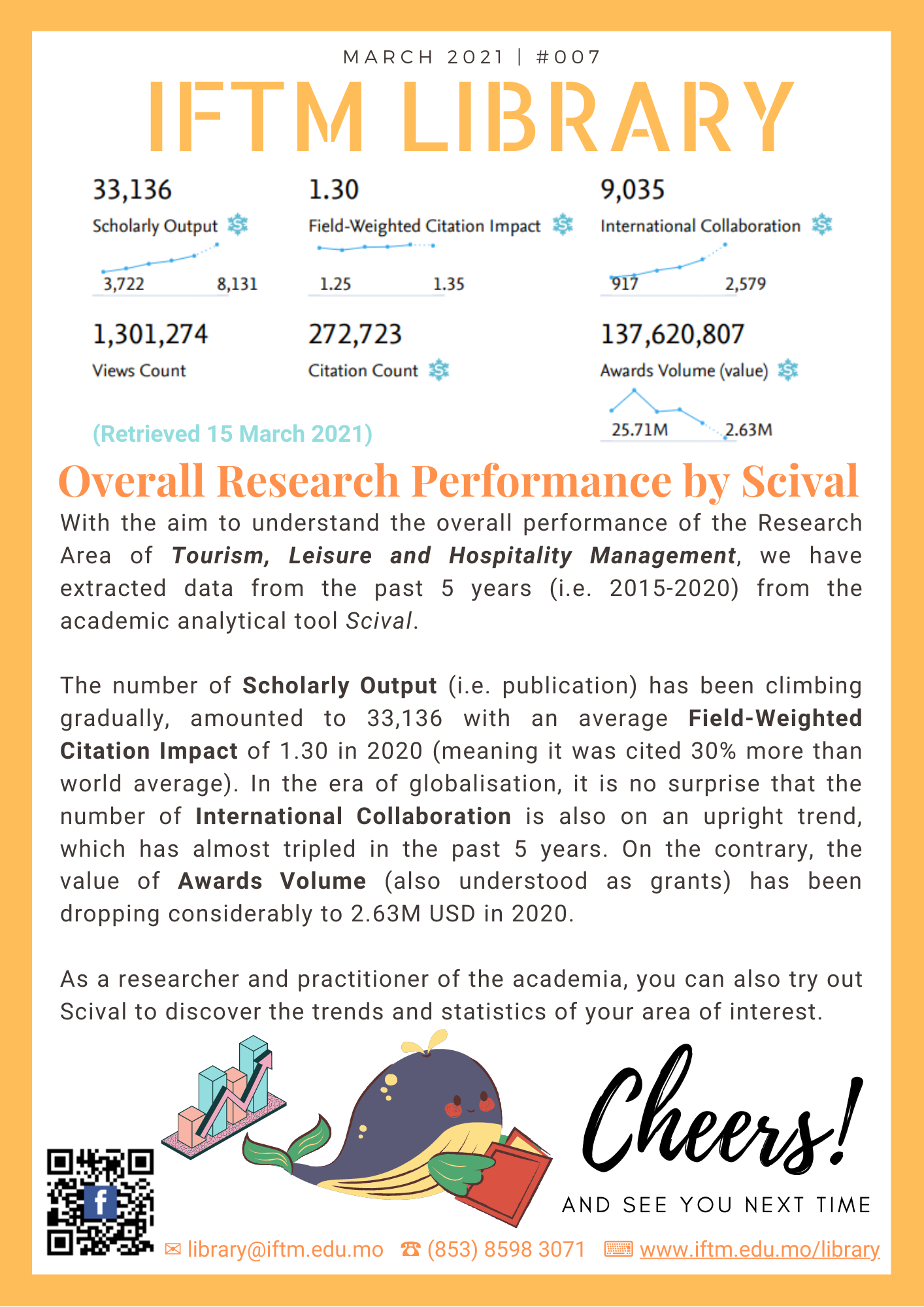 With the aim to understand the overall performance of the Research Area of Tourism, Leisure and Hospitality Management, we have extracted data from the past 5 years (i.e. 2015-2020) from the academic analytical tool Scival.