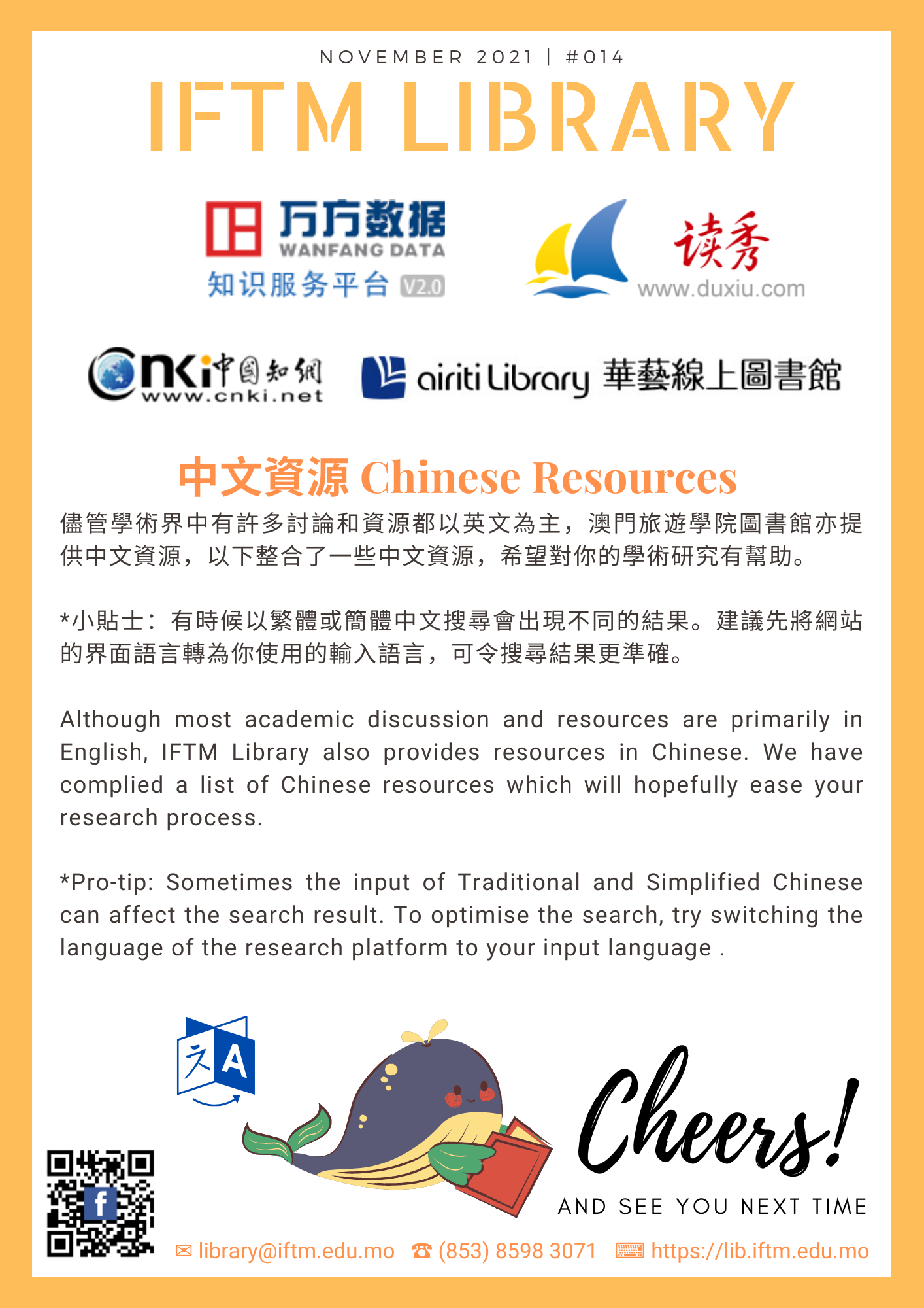 Although most academic discussion and resources are primarily in English, IFTM Library also provides resources in Chinese. We have complied a list of Chinese resources which will hopefully ease your research process.