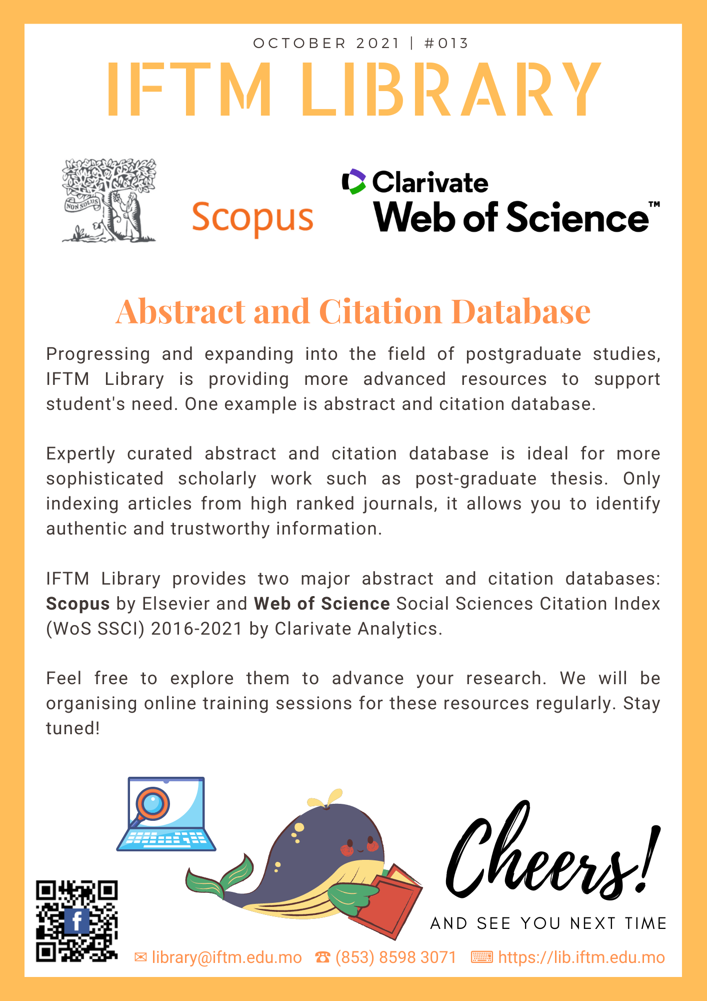Progressing and expanding into the field of postgraduate studies, IFTM Library is providing more advanced resources to support student's need. One example is abstract and citation database.