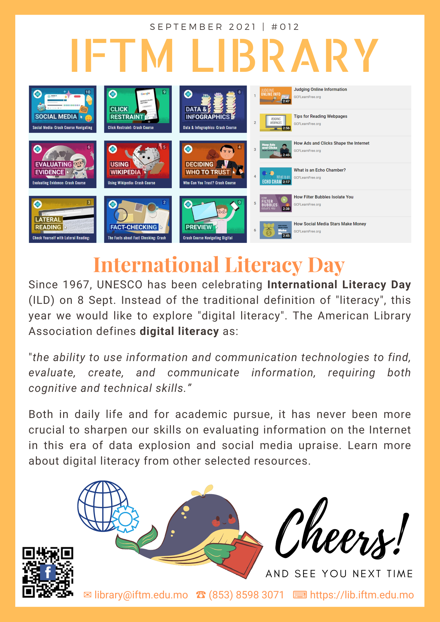 Since 1967, UNESCO has been celebrating International Literacy Day (ILD) on 8 Sept. Instead of the traditional definition of "literacy", this year we would like to explore "digital literacy". The American Library Association defines digital literacy as: "the ability to use information and communication technologies to find, evaluate, create, and communicate information, requiring both cognitive and technical skills.”