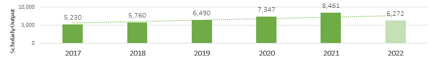 Have a look at the rising number of Scholarly Output in the area of Hospitality & Leisure Management between 2017-2022 (incomplete year) indexed in Scopus.