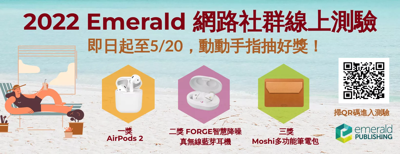 邀請您來做Emerald線上測驗,了解學術出版及傳播,只需3分鐘,獲得機會抽大獎!